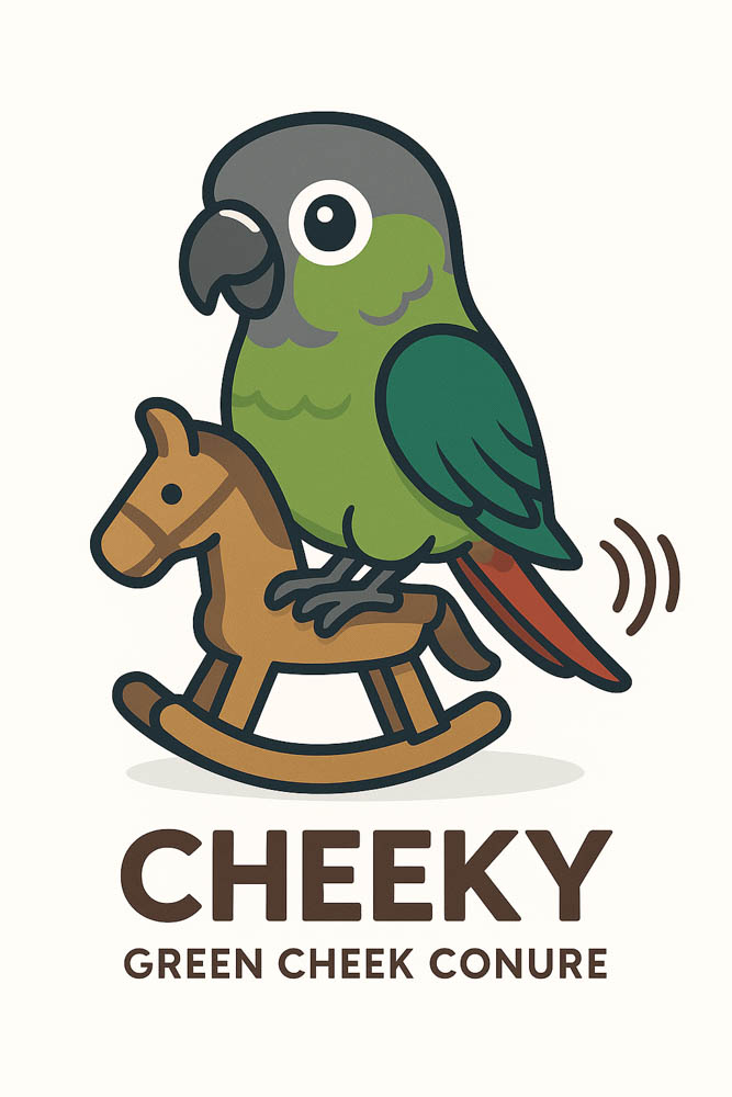 Cheeky the Green Cheek Conure – RFPSInc Brand Ambassador Parrotbot (Heart Version)