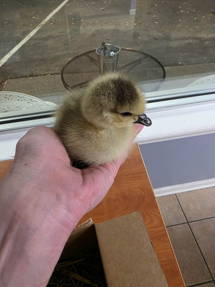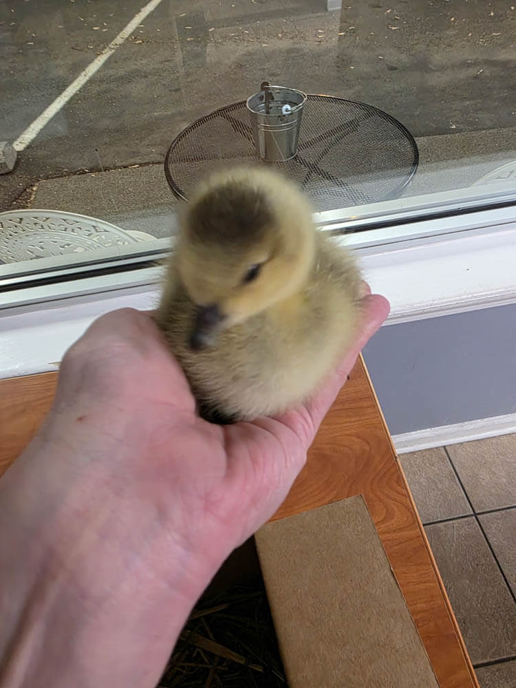 Now, there’s a special kind of heartbreak when it comes to lone goslings. They imprint fast. The first warm, moving thing they see? That’s mom now. Could be a goose. Could be a tire. Could be me. He took one look at Tara and imprinted so hard he practically tried to climb into her jacket. She melted instantly. I’ve seen grown humans take longer to fall in love on dating apps.
