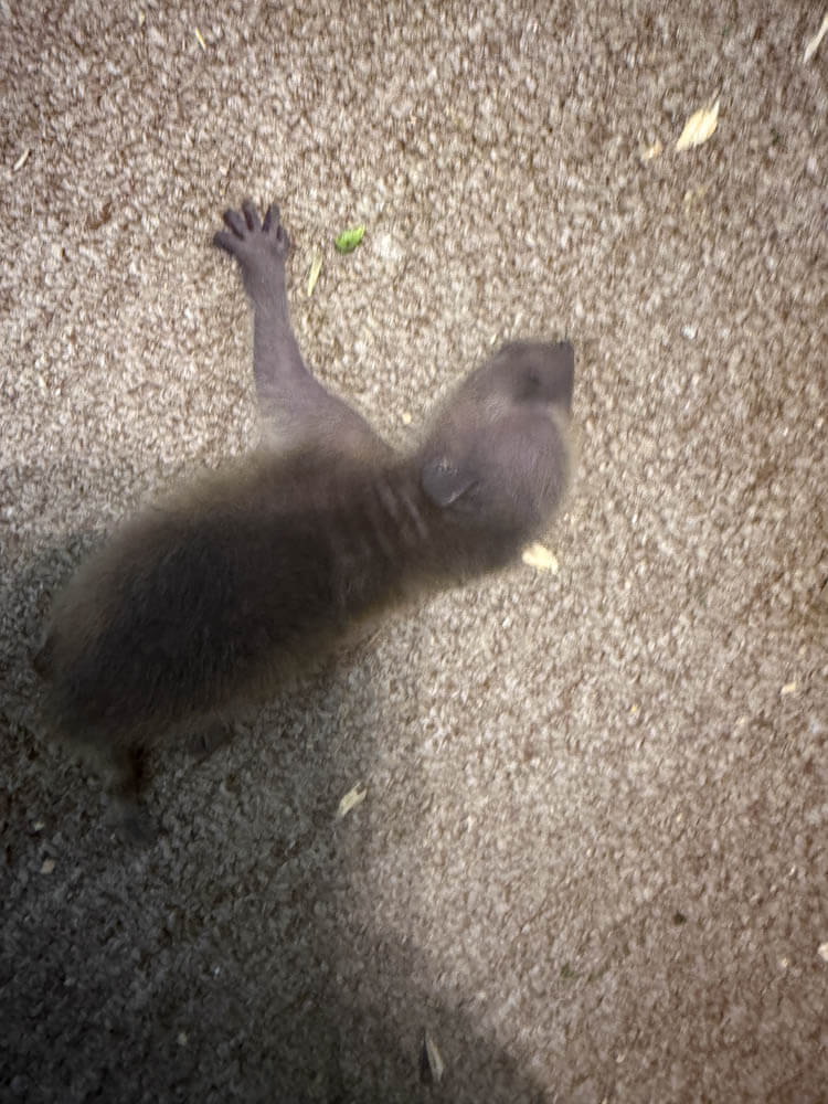 No parents in sight. No siblings. Just one defiant puffball stomping through traffic like he owned the block. We don’t know where he came from, maybe he got separated in a storm, maybe his family crossed too fast and he got left behind. What we do know is he was cold, confused, and way too young to be a solo act.